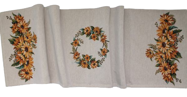Obrus gobelínový- KVETY SLNEČNICE, prírodný podklad - 43x138 cm - Rozmer: 45 x 140 cm (tolerancia rozmeru podľa výrobca +/- 3cm) 45 x 140 cm (tolerancia rozmeru podľa výrobca +/- 3cm) Skladom € 10.30